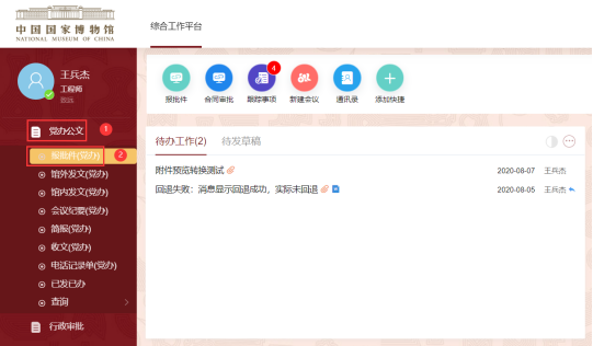 2020年初,接中國國家博物館對(duì)單位內(nèi)部工作門戶建設(shè)的要求,我公司協(xié)同北京致遠(yuǎn)公司進(jìn)行聯(lián)合開發(fā),歷經(jīng)2個(gè)月時(shí)間為國家博物館搭建了內(nèi)部工作門戶,統(tǒng)一工作門戶系統(tǒng)由我公司自主研發(fā)平臺(tái)建設(shè),集成北京致遠(yuǎn)公司辦公協(xié)同系統(tǒng),為中國國家博物館所有工作人員解決了線上辦公的一些便利問題,也得到了客戶及伙伴的一致好評(píng)。